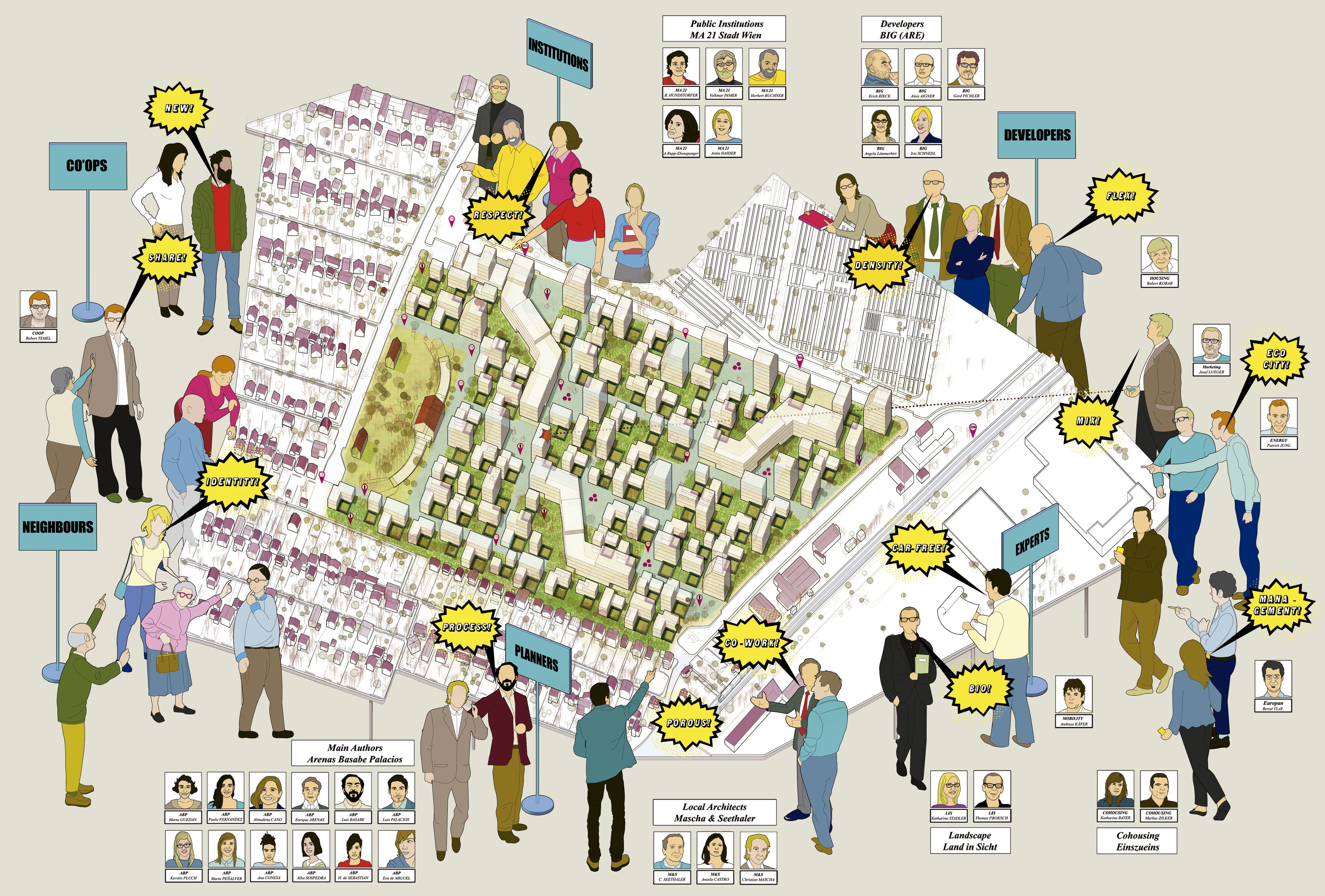 Autores: Arenas Basabe Palacios Arquitectos (Enrique Arenas Laorga, Luis Basabe Montalvo y Luis Palacios Labrador); M&S Architekten, Viena (urbanismo), Buschina & Partner, Viena (arquitectura).