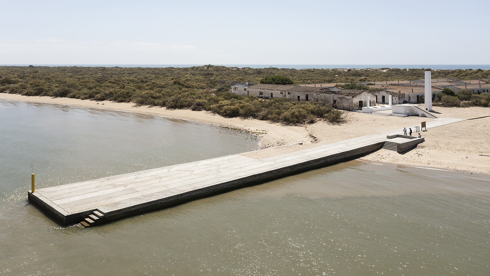 El Real de la Almadraba, ubicado en el paraje natural de la Flecha del Rompido, es un conjunto arquitectónico construido en 1929 que representaba el arte de pesca del atún en la costa de Huelva. Abandonado en los años setenta, fue declarado Bien de Interés Cultural en 2015. La rehabilitación se enfocó en las piezas industriales y se completa con un sendero peatonal que une el río Piedras con el océano Atlántico. La rehabilitación se divide en dos ámbitos, el embarcadero y la caseta de gasoil, de los cuales apenas restaba su traza, y la caldera, la chimenea y el alquitranadero, en mejor estado de conservación, aunque necesitados de una fuerte intervención. El proyecto busca recuperar la herencia patrimonial y etnológica de este antiguo arte de pesca en armonía con el entorno costero de Huelva.